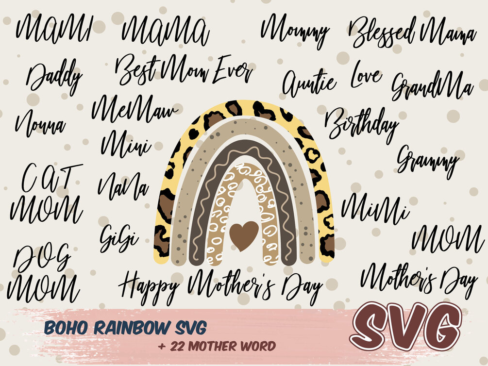 SVG Boho Rainbow Mothers day Love Mom digital download Clip Art Cut file Wall Decal Sticker Leopard Rainbow Clipart gift for mum Bundle